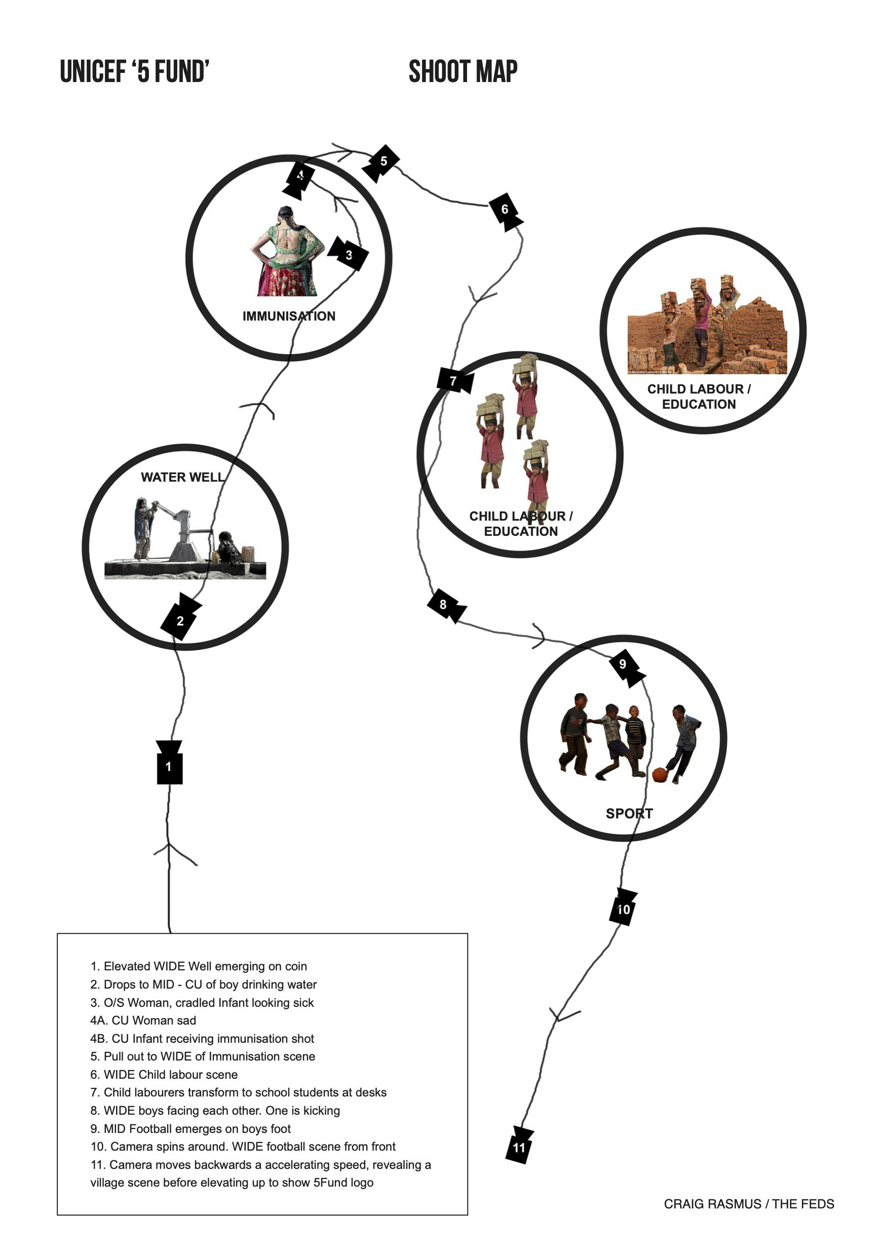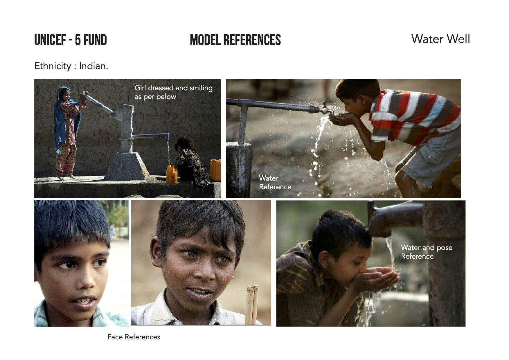 Over coffee, ECD Mike Spirkovski (then of Iris Worldwide) shared the spark of an idea: a 5 cent coin lying on a tray table, from which a small boy emerges, drinking from a well. He imagined it not as a literal scene, but something metaphorical—like the coin itself giving life. That moment became the visual cornerstone of the film. I was given creative autonomy to develop the rest of the narrative: a series of unfolding moments that would show how donated coins fund UNICEF’s essential work for children in need.